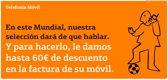 Con esta promoción podremos obtener hasta 60 euros en llamadas. La promoción nos dará inicialmente 30 euros, y otros 30 euros si la selección Española consigue ganar el Mundial de Fútbol.