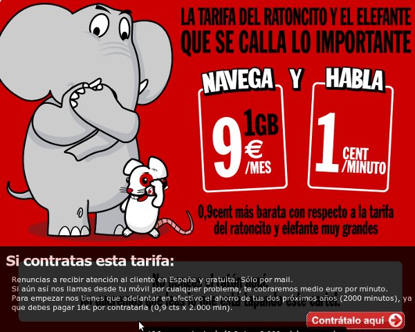 Pepephone vuelve con sus contraataques y lanza la «tarifa del Ratoncito y elefante que se calla lo importante», un rimbombante nombre de una tarifa muy al estilo de Pepe para contrarrestar la que sacaba Amena.